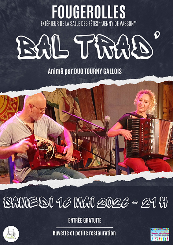 Un bal trad viendra animer la place de la salle des fêtes Jenny de Vasson. Venez guincher avec le duo Gallois Tourny.