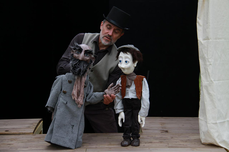 Dans l’esprit des théâtres forains, un petit homme quitte la misère et croise désillusions, mensonges… jusqu’à un philosophe vagabond qui éveillera en lui la soif de liberté. Spectacle interactif, joyeux et vivant, où marionnettes, conte et esprit de foire se mêlent pour ravir petits et grands. A partir de 8 ans.