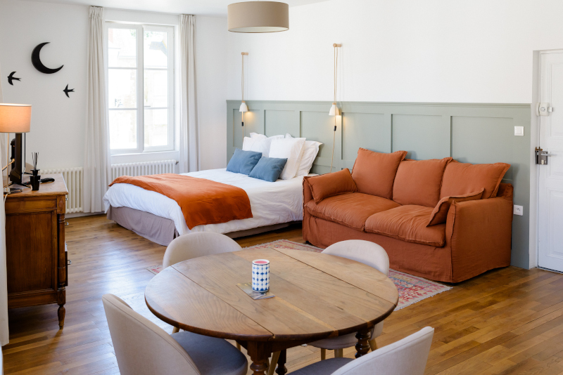 Studio de 35 m² pour 5 personnes maxi, avec vue sur la Basilique Saint-Etienne, classée au patrimoine mondiale de l'UNESCO dans le cadre des chemins de Saint-Jacques-de-Compostelle, et sur la place de la Mairie. Composé d'une kichenette toute équipée (bouilloire, cafetière, plaque induction), une salle de douche (WC, douche à l'italienne et lavabo), Lit 2 places, canapé convertible et fauteuil convertible. ,